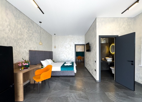 Территория - озелененная и живописная, самые красивые тропические растения и цветы. Лаунж-зона с подогреваемым бассейном, беседки для отдыха. Размещение в современных, уютных номерах в авторском оформлении. Каждый номер с отдельным входом и оборудованным балконом.