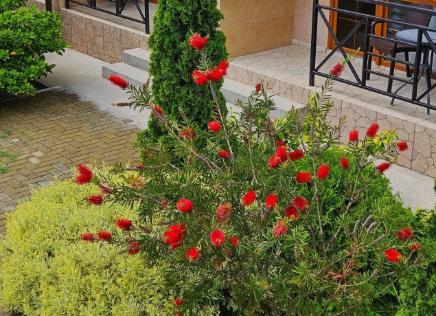 Отдельных слов заслуживает наша территория. Это настоящий дендрарий, в котором разнообразные зеленые и цветные композиции ежегодно пополняются и каждыйследующий сезон создают новый пейзаж. Представьте себя с чашечкой кофе на балконе среди зелени, пения птиц и журчания реки, уверенны такое начало дня задаст правильное настроение на отпуск!